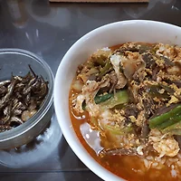 밥 오뎅 김 누른밥 볶은김치 가.무한 리필이다.