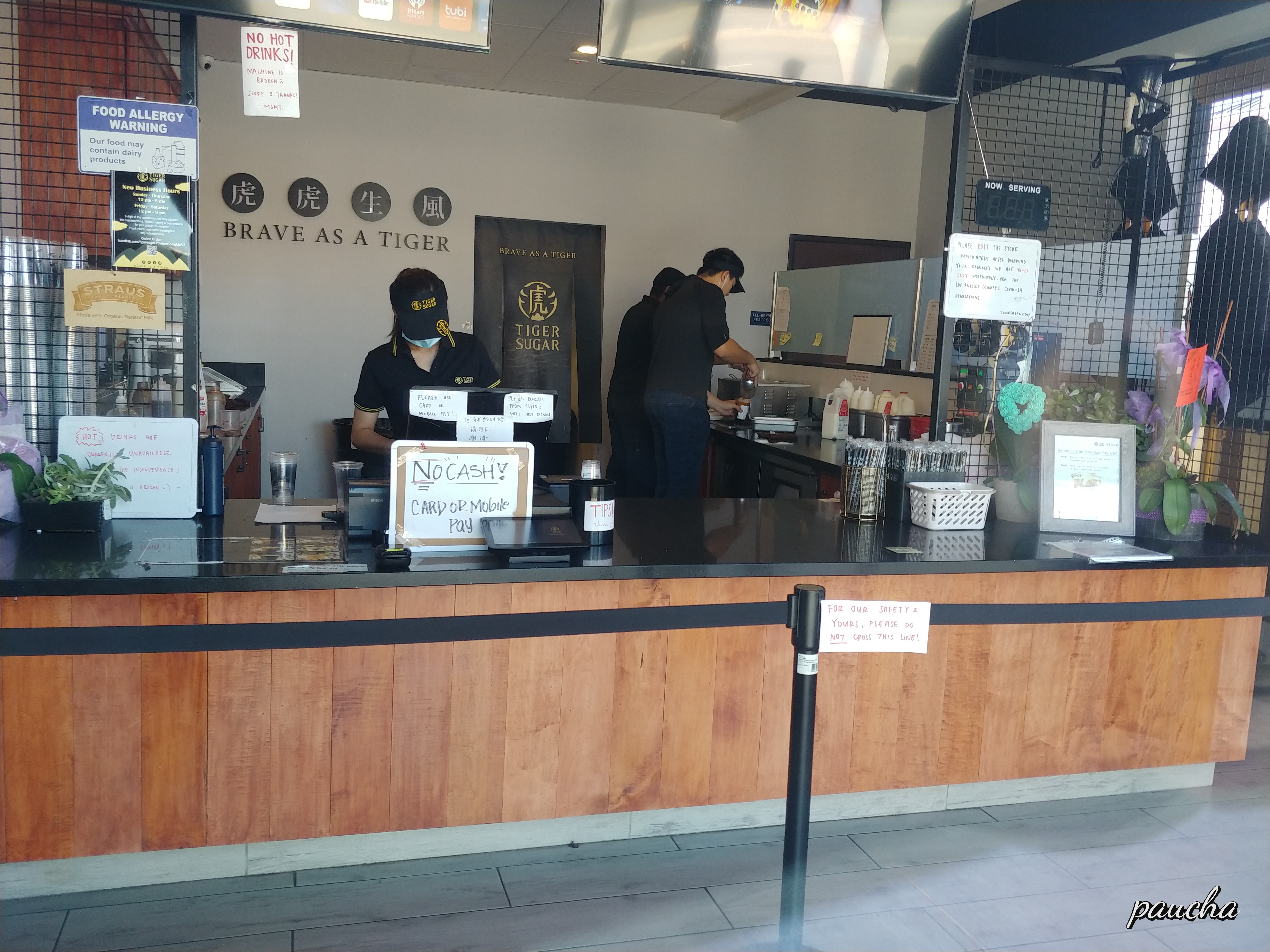 계산이 끝나면 나와 있어야 한다 . 그래야 그 다음 사람이 들어 가서 주문. 문 바깥쪽으로 바닦에 줄 세우는 테이프로 간격 떨어 뜨려 놓음.