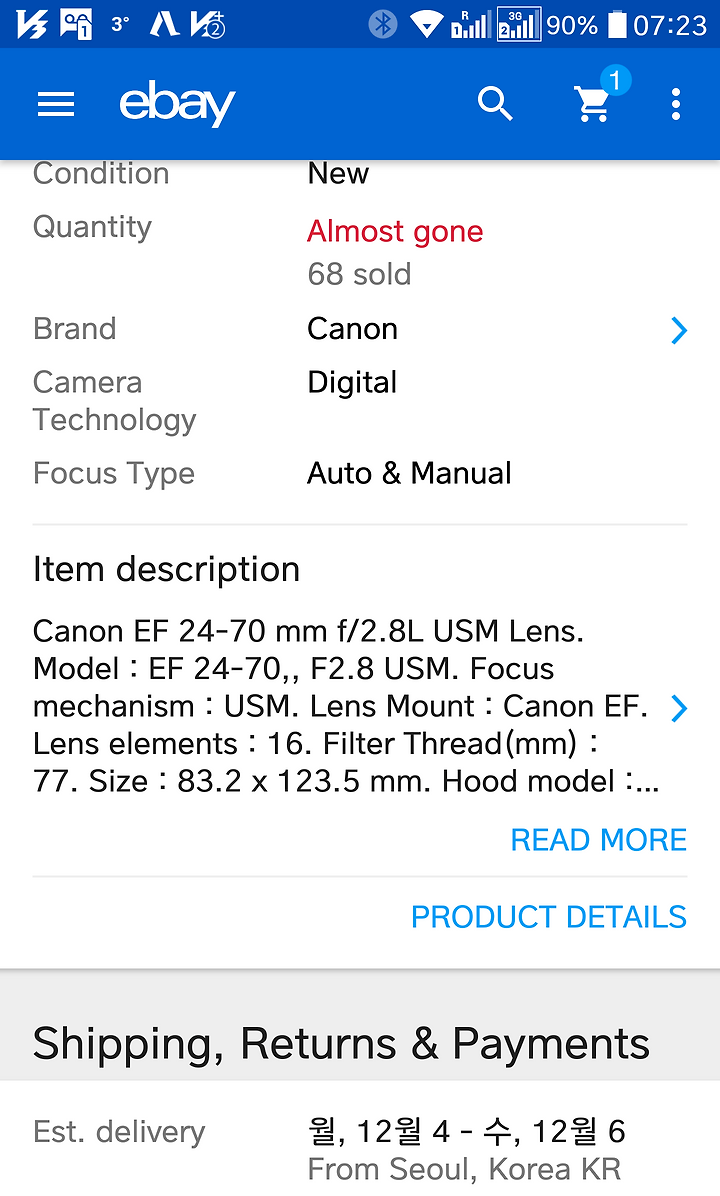 애들 거주지로 이베이를 개설을 해놔서 (애들고 쓰니까) 자주 쓰게 되는데 가끔 보면 전자 제품을 한국에서 보내 준다는 품목들이 있다.