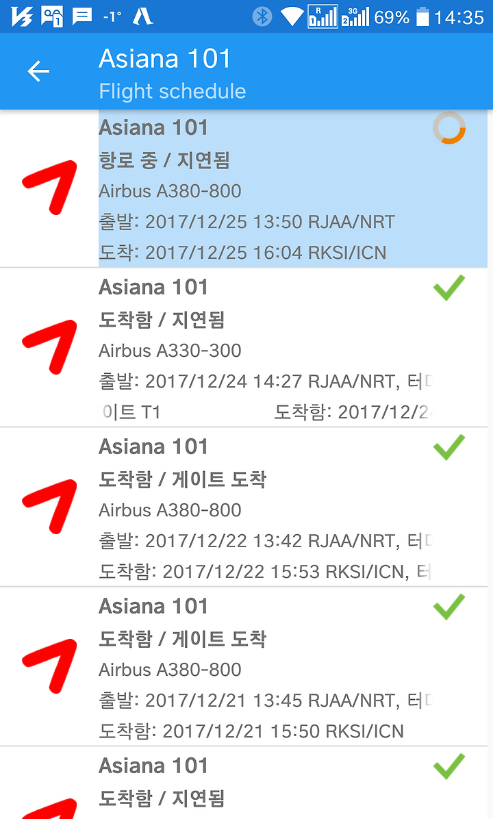 하여간 날씨 탓하며 이상한 케쥴 운영 하는 아시아나...더 이상 아니지 않나 싶다.